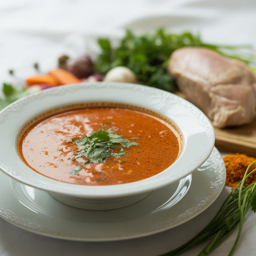 Пряный, согревающий вкус с насыщенной куриной основой, томатной кислинкой и характерным ароматом специй.