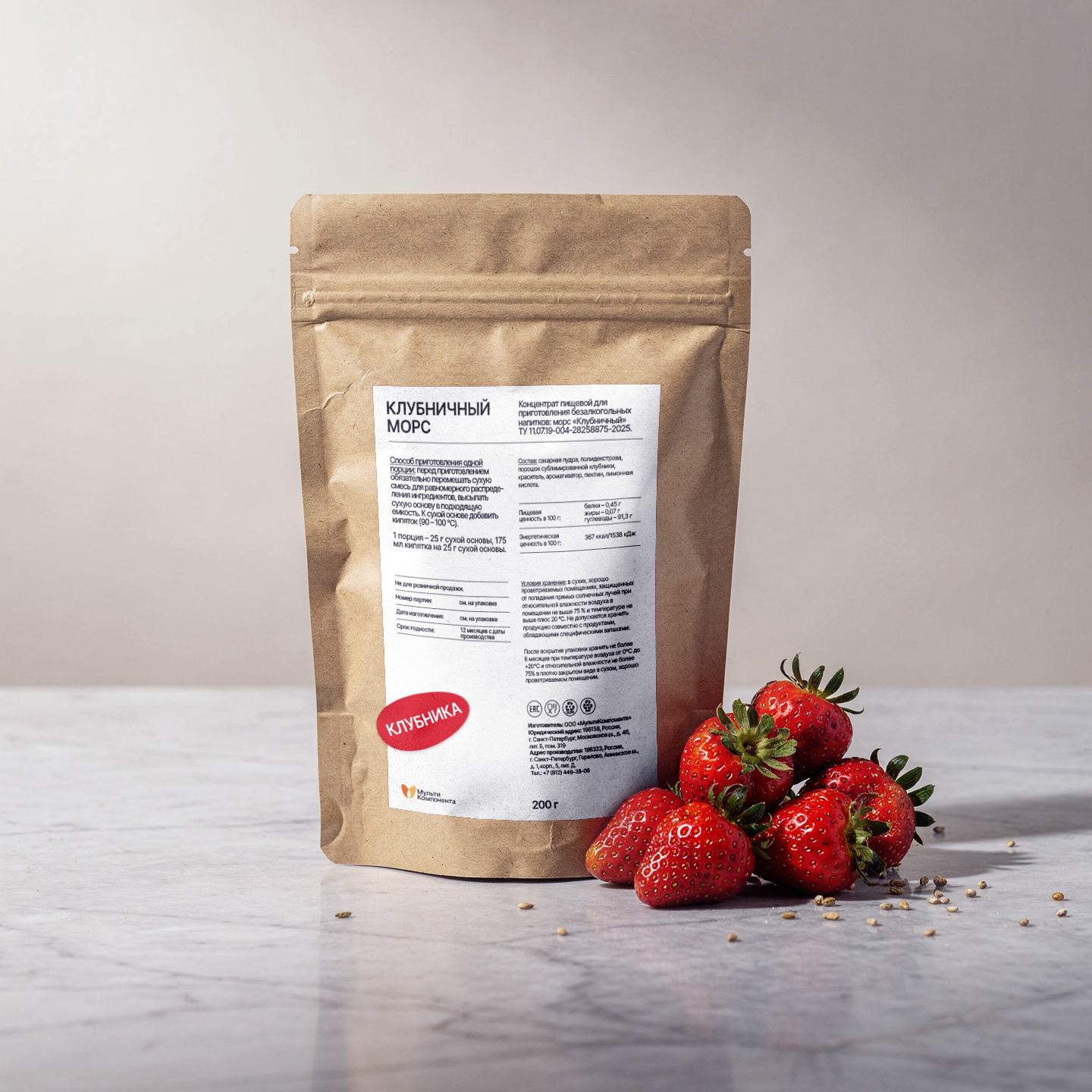 Концентрированная сухая смесь на основе сублимированной клубникой для быстрого приготовления морса.