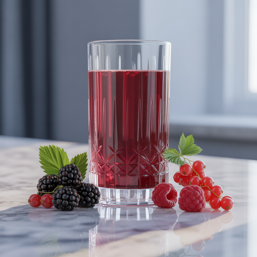 Многослойный и гармоничный вкус, где сладость малины сочетается с кислинкой смородины и терпкими нотами ежевики.